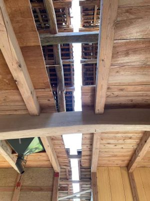 屋根を外すと、これまで隠れていた梁や柱が顔を出します。何十年も家を支えてきた骨組みは、木の力強さを感じさせてくれます。