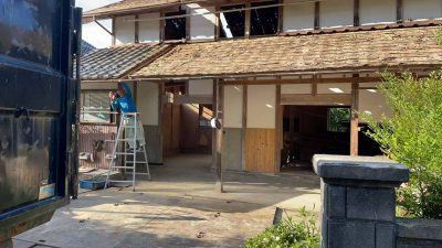 こちらは工事前の建物です。木造住宅らしい佇まいで、歴史を感じる外観。今回の工事では全てを取り壊すのではなく、一部を残す形で解体を進めます。