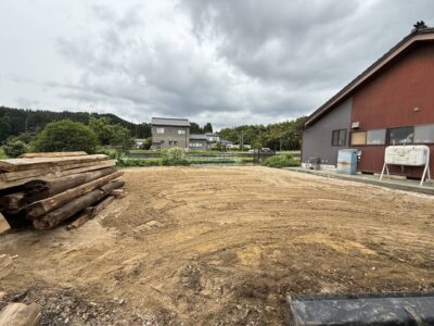 この状態にしておけば、次の工事業者さん(基礎屋さんや建築工事)もスムーズに乗り込むことができ、全体工程が早まるという利点があります。